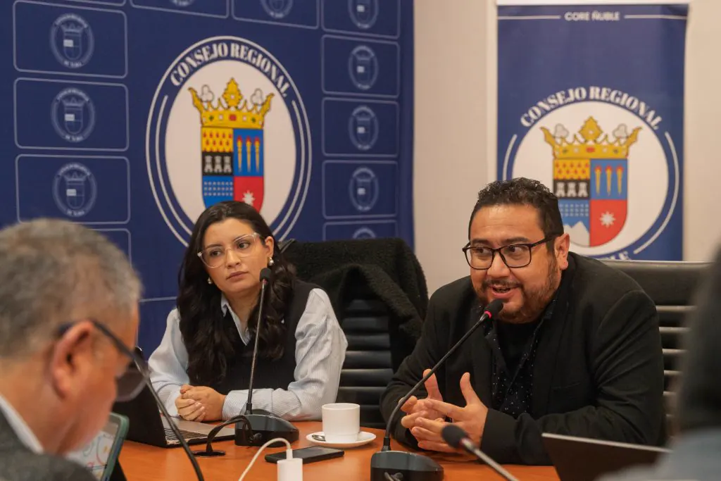 Durante la jornada, el equipo de gestión —representado por el director ejecutivo Ricardo Valderrama Aravena y la encargada de programación María José Cortés Villa— presentó los principales hitos del trabajo desarrollado por la corporación, enfocado en ampliar el acceso al arte y la cultura en diversos territorios de la Región de Ñuble.